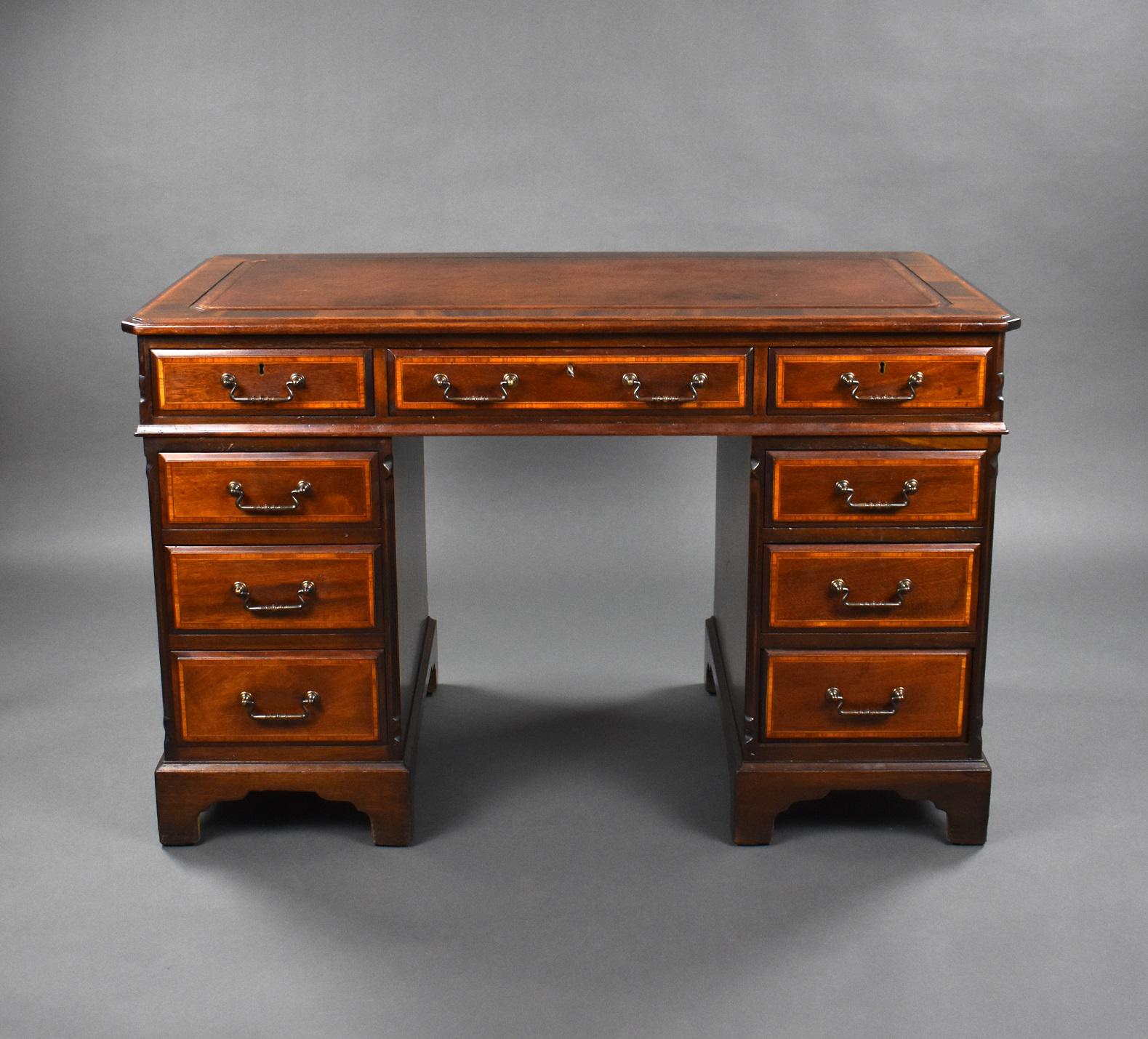 20th Century Inlaid Mahogany Pedestal Desk & File Cabinet