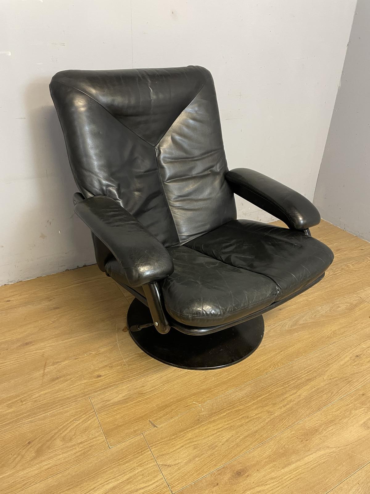 20th Century Leolux Graphite Leather Swivel Chair