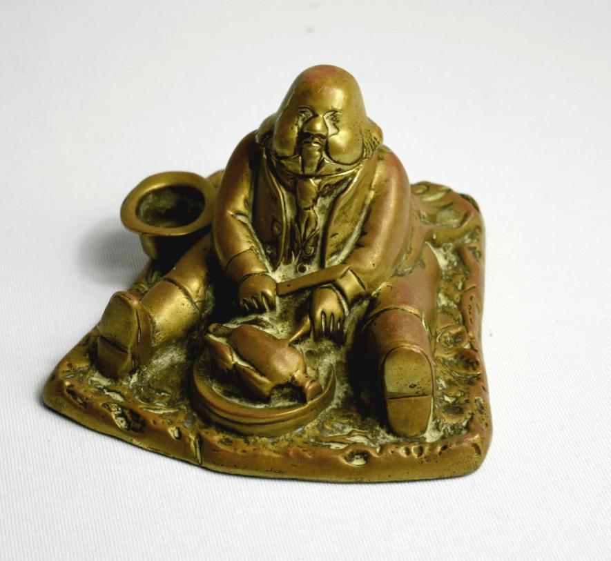 20th Century Novelty Brass Inkwell of a man eating a Chicken