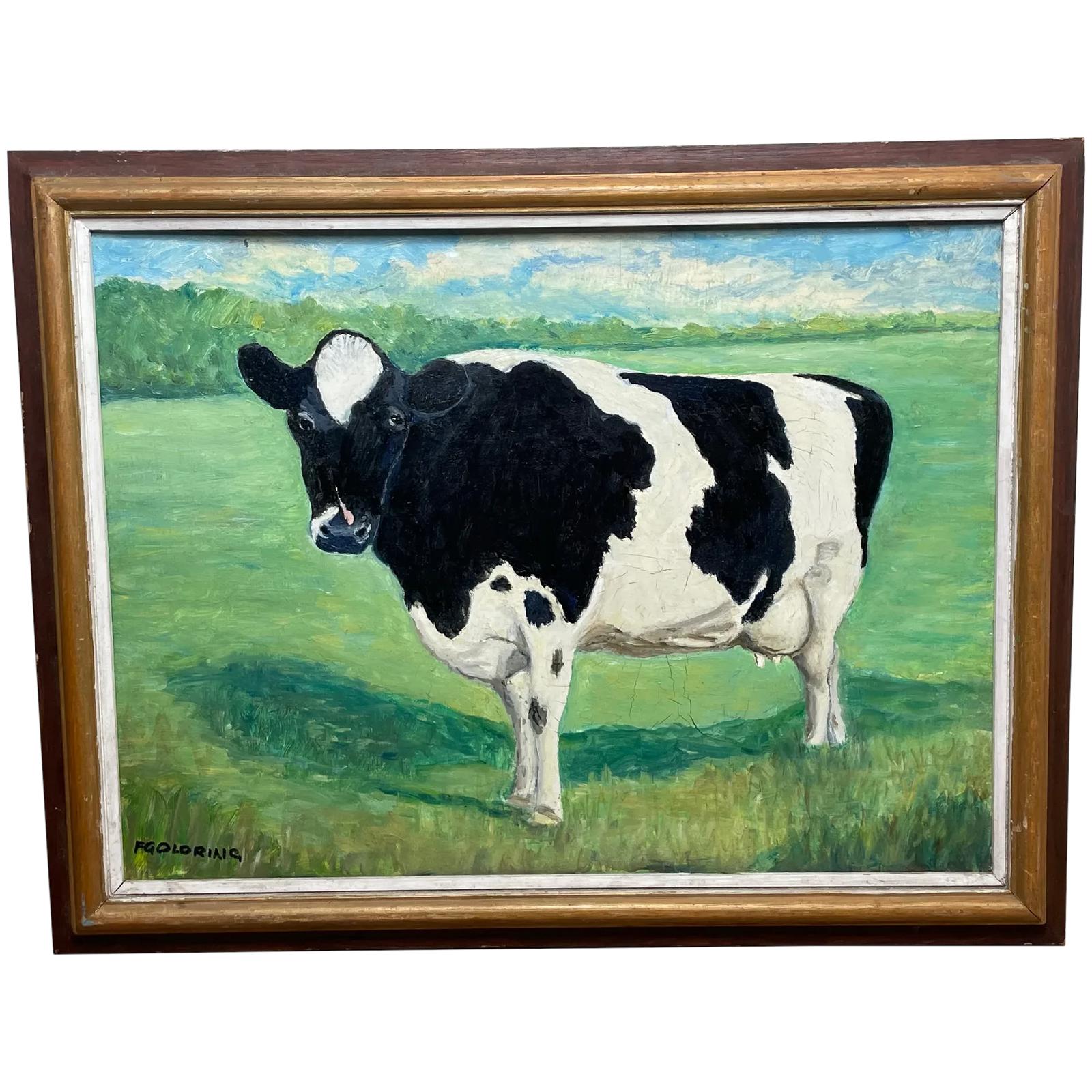 20th Century Oil Painting Holstein Friesian Prized Cow "Susan" Animal Portrait