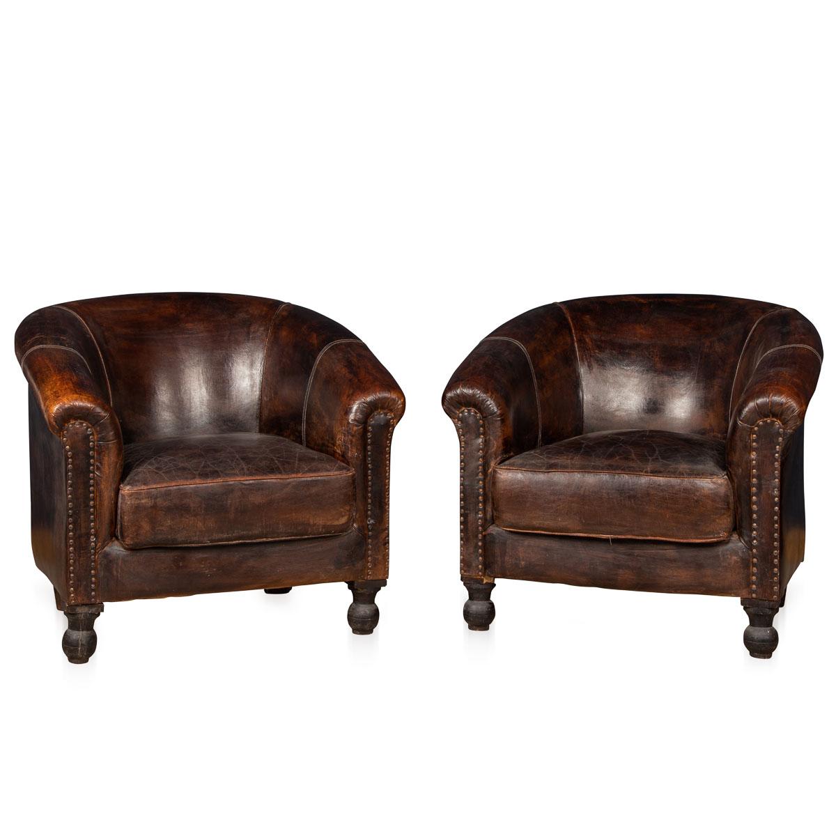 20th Century Oversized Dutch Sheepskin Leather Club Chairs