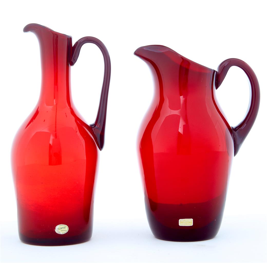 20th Century Pair of 1950's Red Art Glass Jugs by Monica Bratt (1 of 3)
