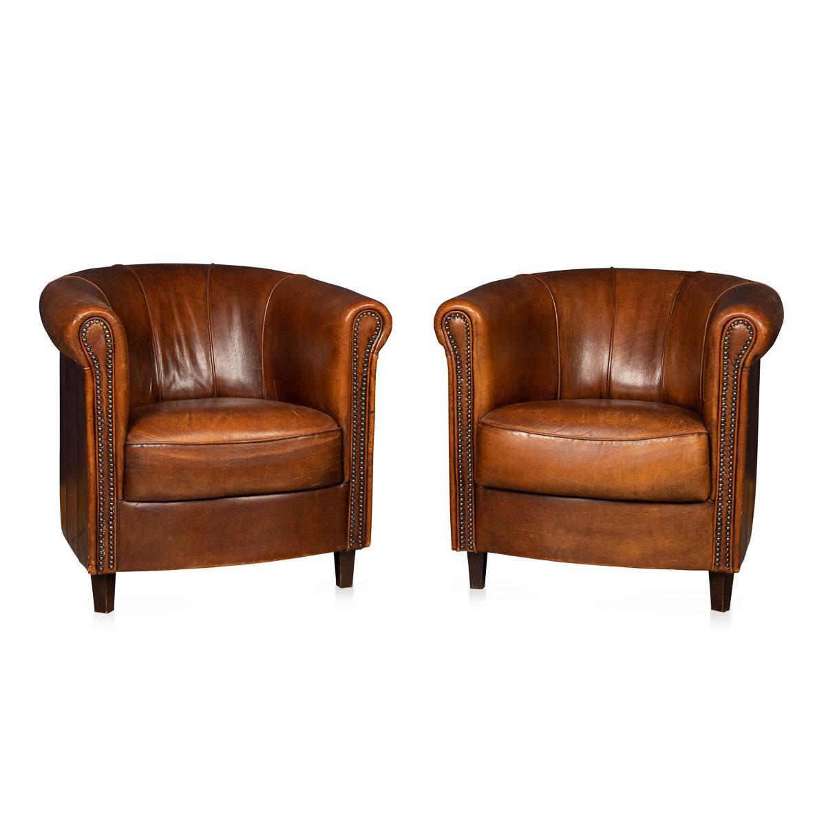 20th Century Pair of Dutch Leather Club Chairs