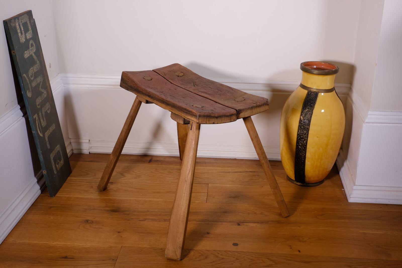 20th Century Primitive Stool with Two Planks