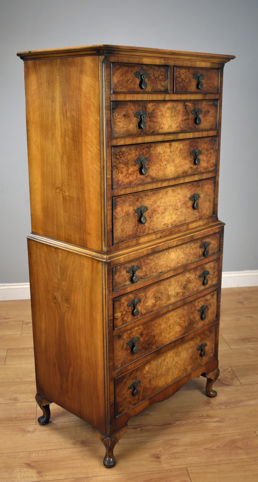 20th Century Queen Anne Style Burr Walnut Chest On Chest