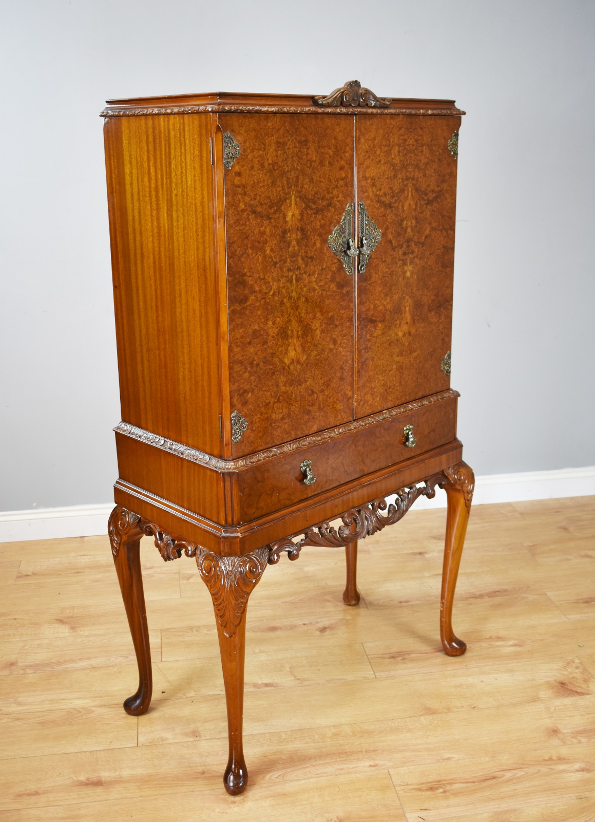 20th Century Queen Anne Style Burr Walnut Cocktail Cabinet