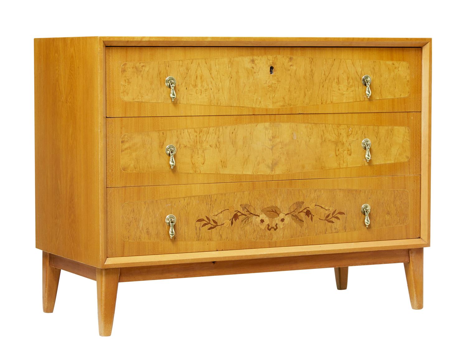 20th Century Scandinavian Modern Inlaid Elm Chest of Drawers (1 of 1)