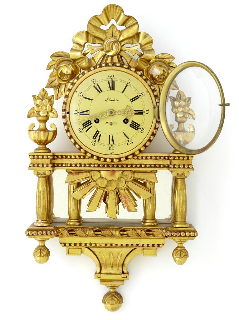 20th Century Swedish Ornate Gilt Wall Clock by Skandia of Stockholm