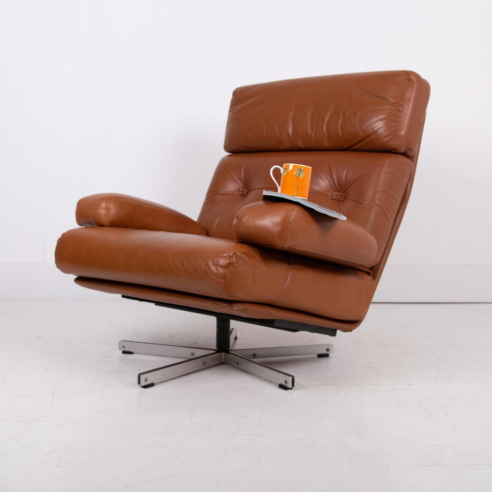 20th Century Swivel Tan Leather Armchair Tetrad Nucleus c.1970 No2