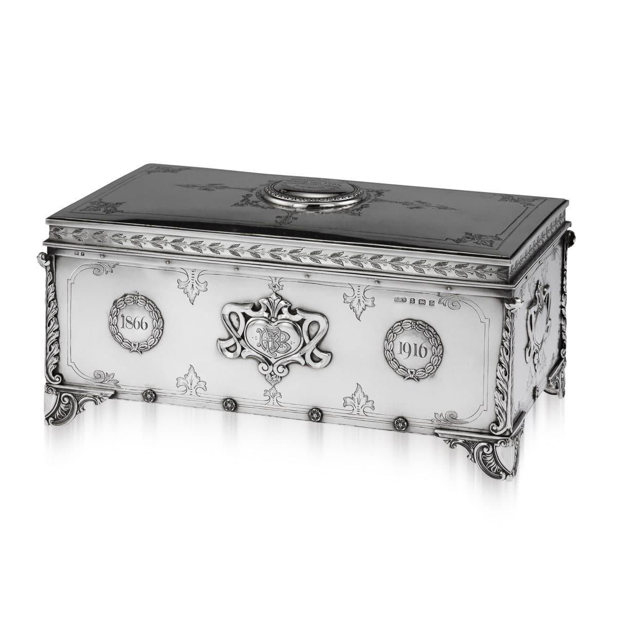 20thc English Art Nouveau Solid Silver Presentation Cigar Box c.1916