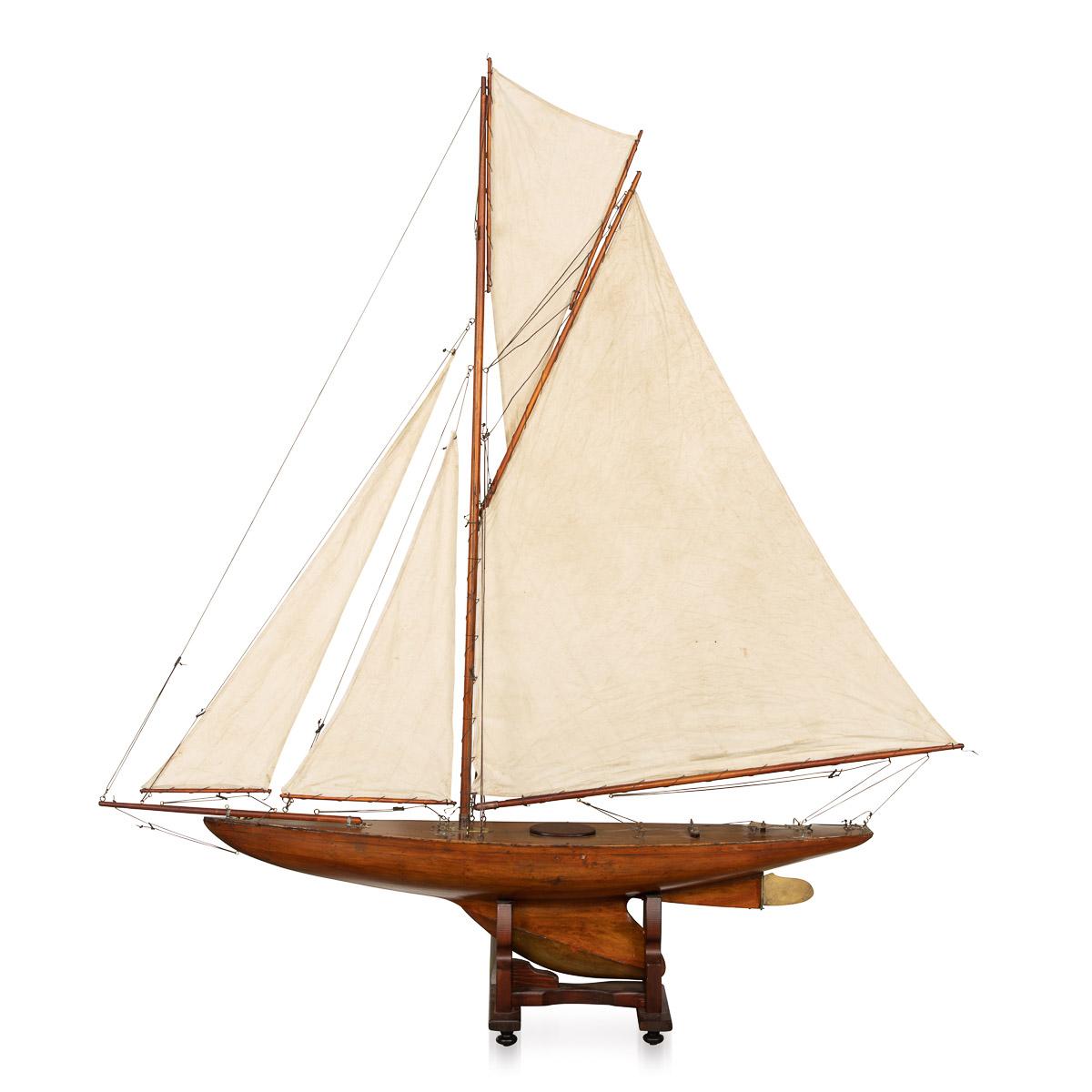 20thc English Gaff Rigged Racing Wood Pond Yacht c.1910