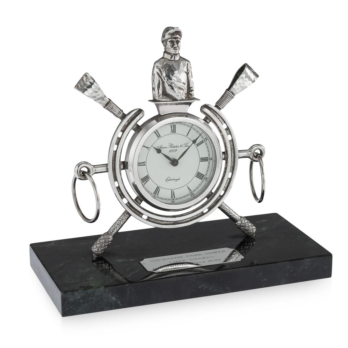 20thc Solid Silver Horse Racing Clock, Edinburgh c.1983