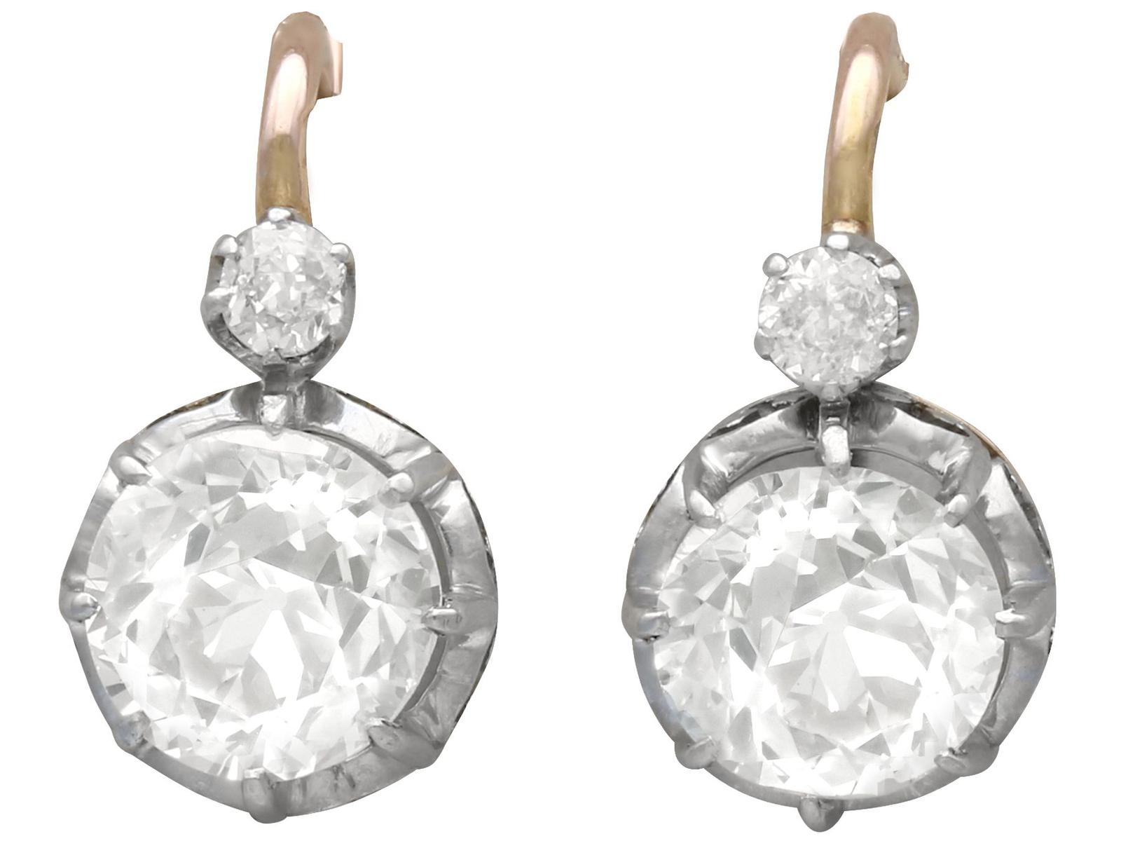 2.40ct Diamond & 18ct Yellow Gold Drop Earrings - French Antique c.1900 (1 of 9)