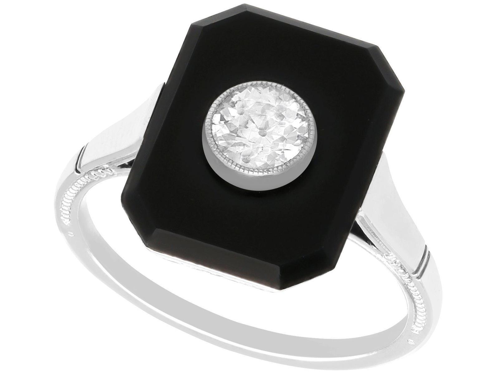 2.50ct Black Onyx & 0.50ct Diamond, 14ct White Gold Dress Ring c.1925