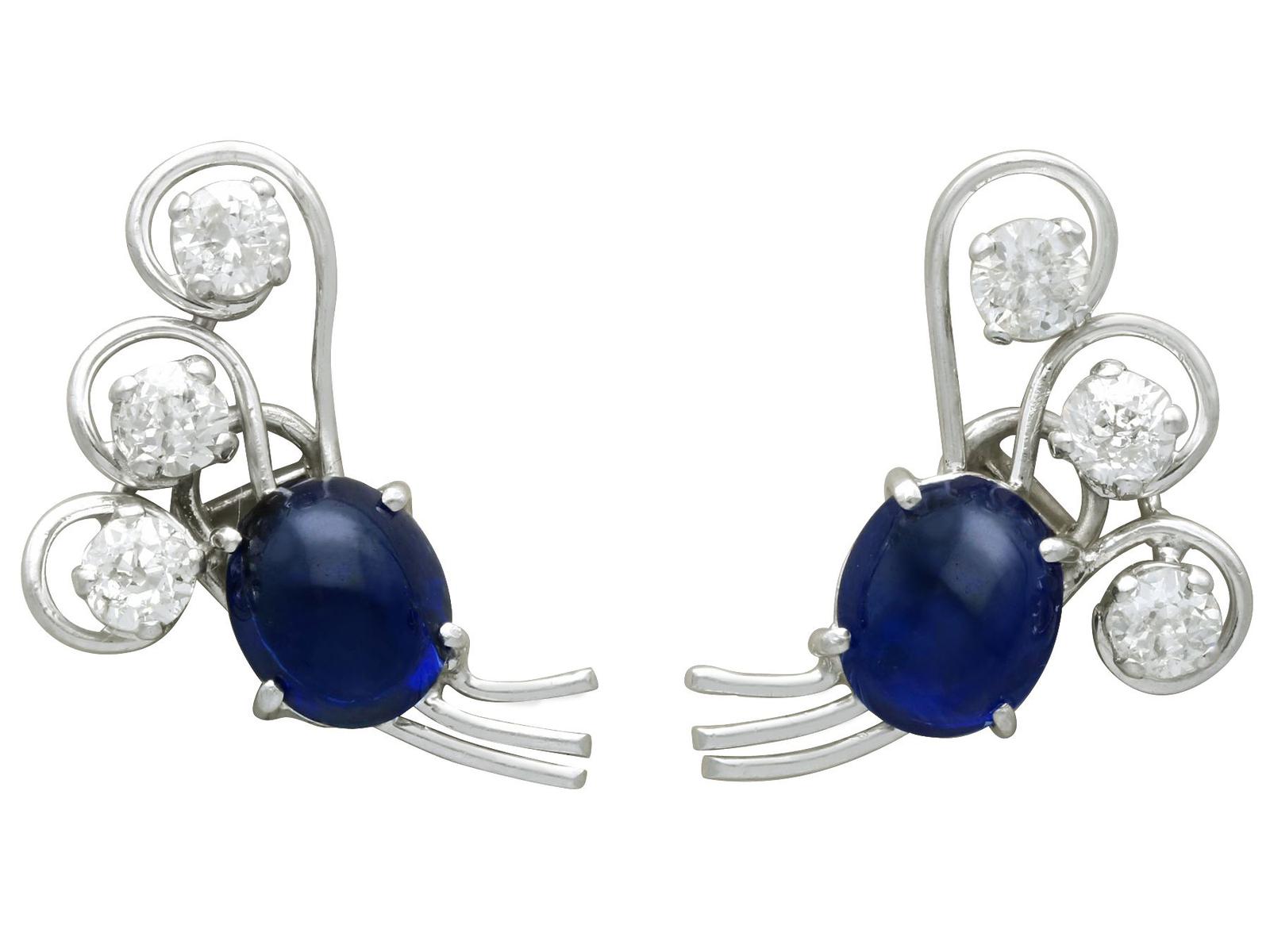 2.80ct Sapphire & 1.78ct Diamond, Platinum Earrings - Vintage c.1940