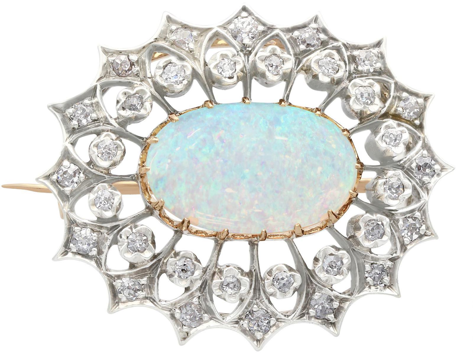 2.99 ct Opal and 0.96 ct Diamond, 9 ct Yellow Gold Brooch - Antique Victorian (1 of 9)