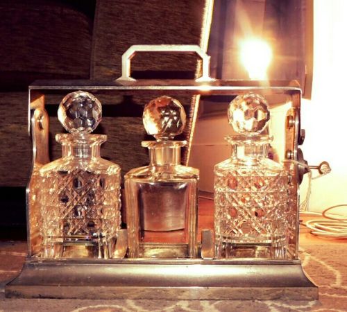 3 Beautiful George V era English Silver Plate Decanter Tantalus