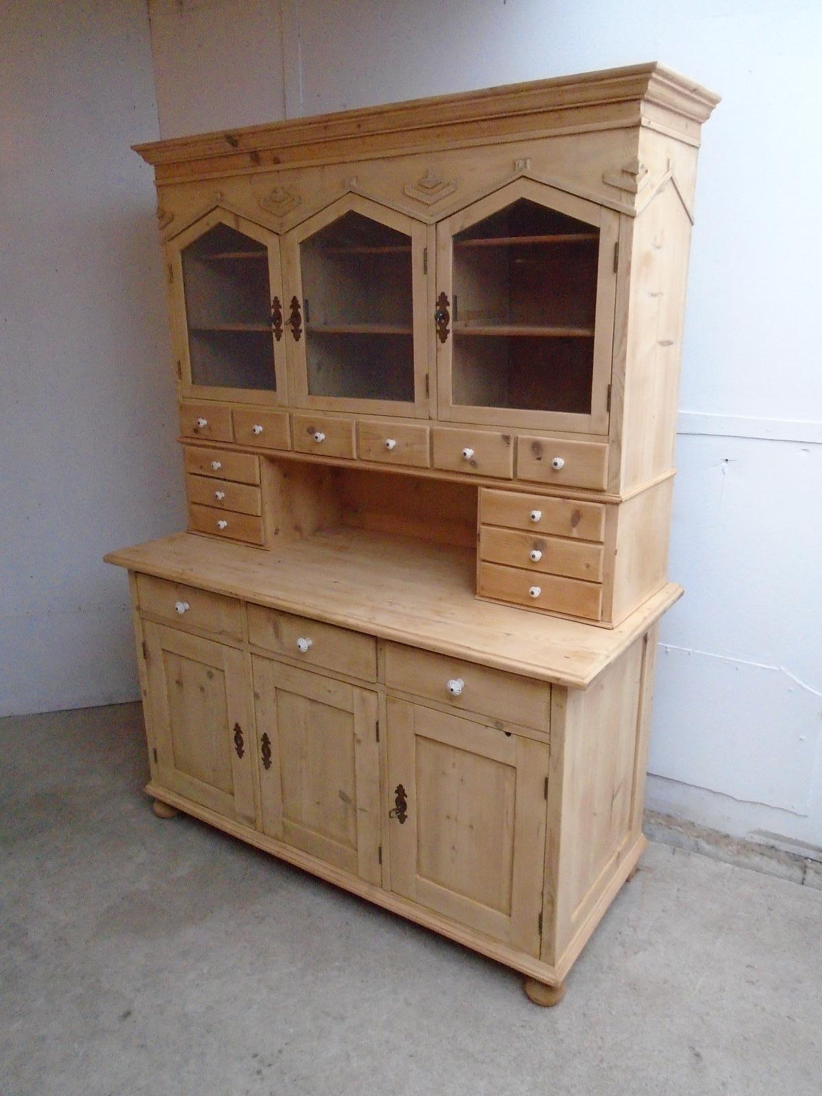 3 Door Art Deco Antique Pine 12 Spice Kitchen Dresser to wax / paint