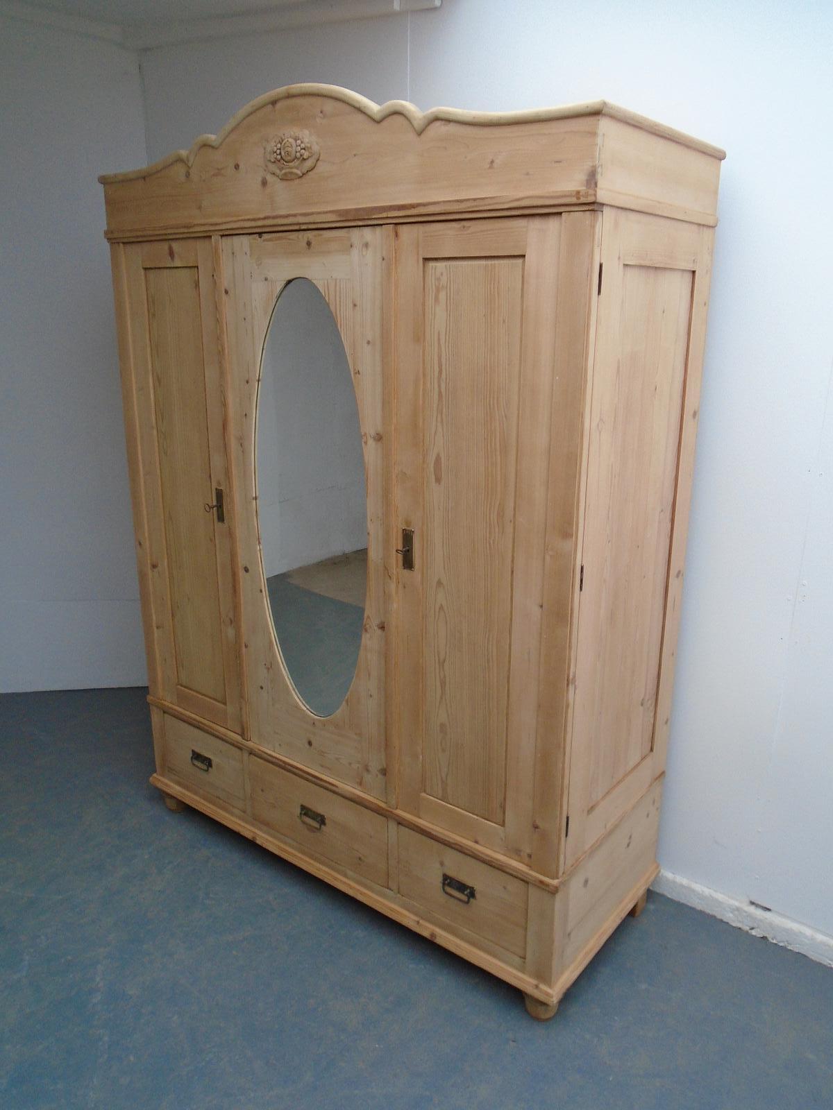 3 Door Victorian Antique Pine Mirrored Knockdown Wardrobe to Wax / paint