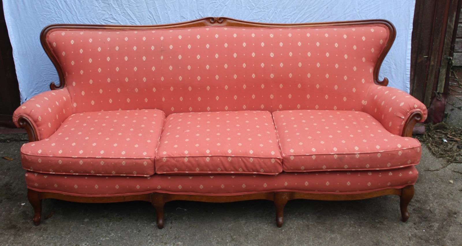 3 Seater Louis XV Style Mahogany Sofa Rust Upholstery c.1910