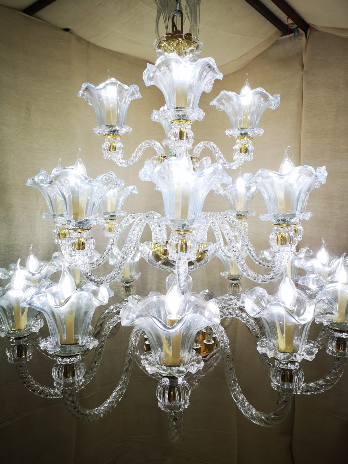 3 Tier, 24 Arm Glass Chandelier c.1930