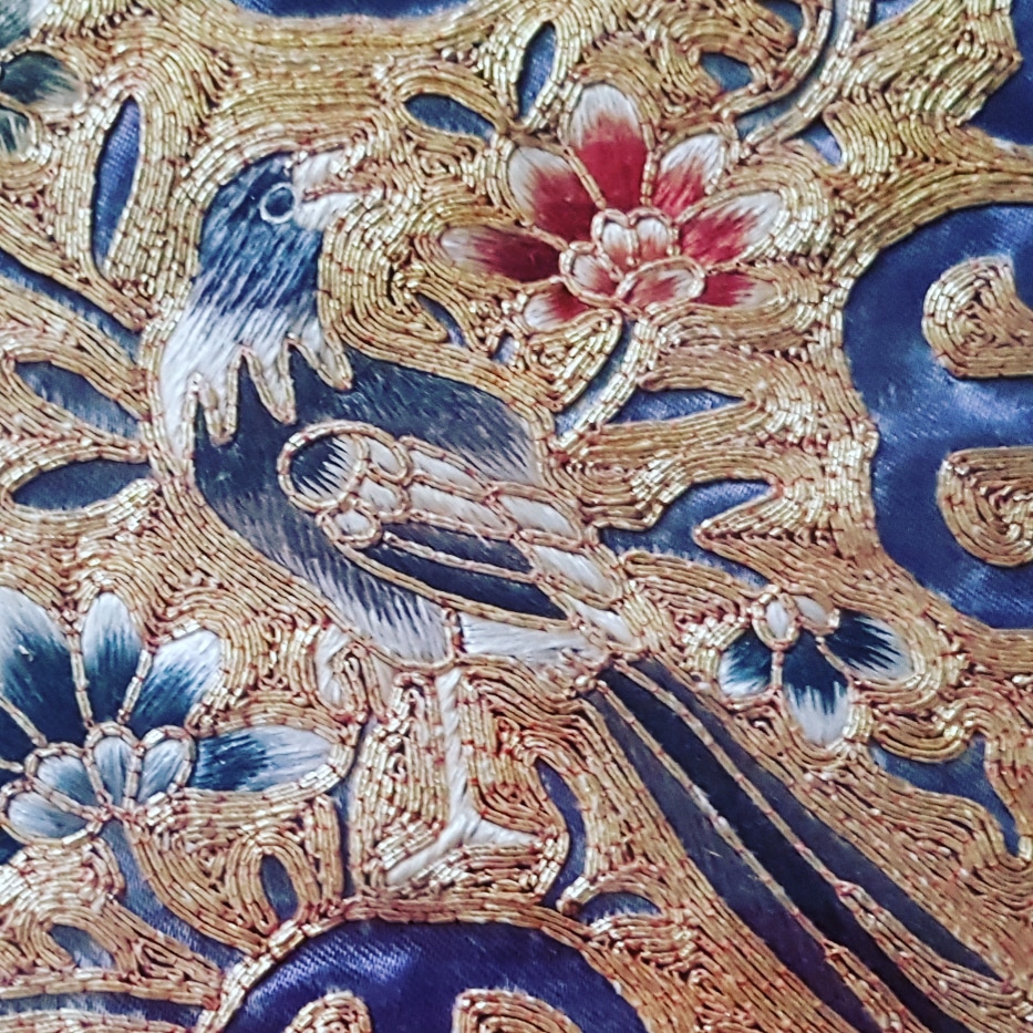 3 Wonderful Old Chinese Embroideries in Couched Gold Thread, Lotus, Magpie Etc