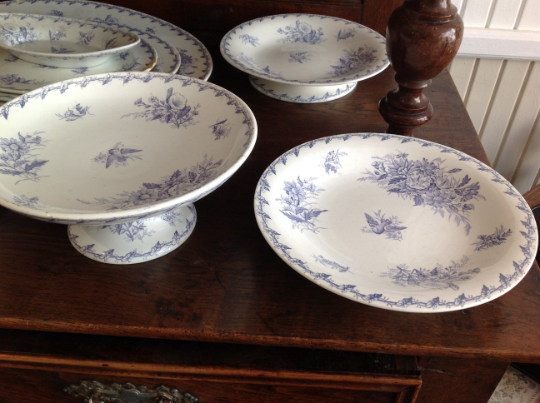 32 Piece Antique 19th Century French Gien Pottery Purple Transfer Printed Dinner Service Each Piece Stamped