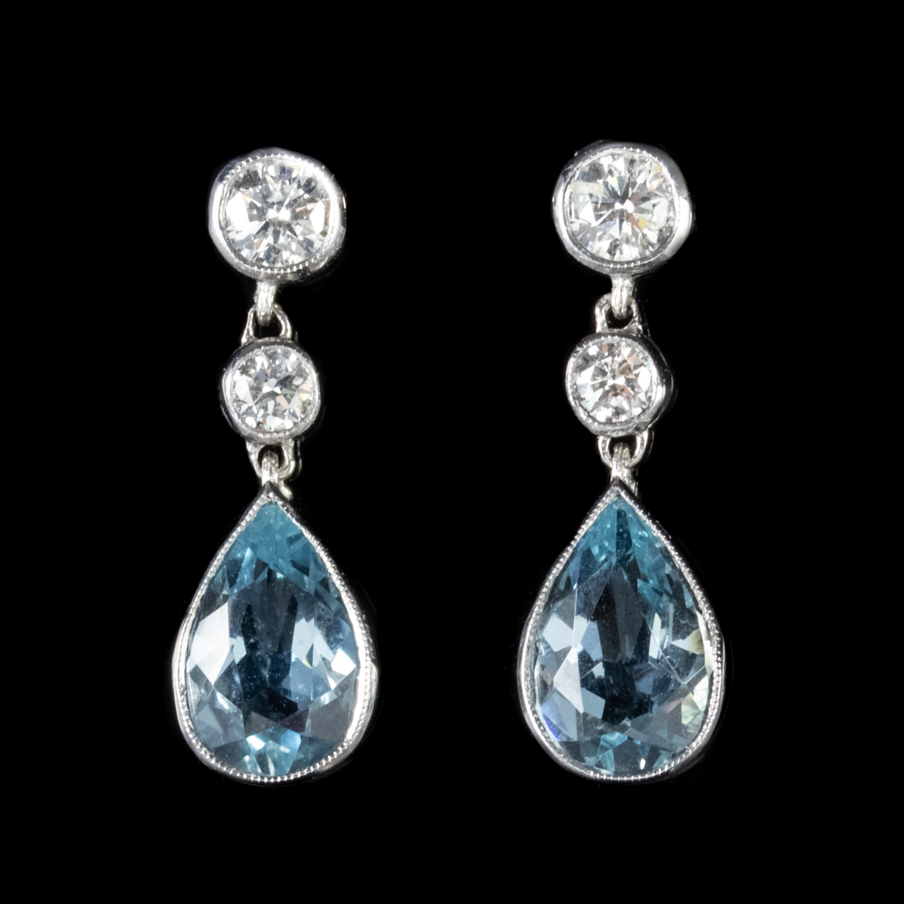 3.3ct Aquamarine Diamond Drop Earrings 18ct White Gold