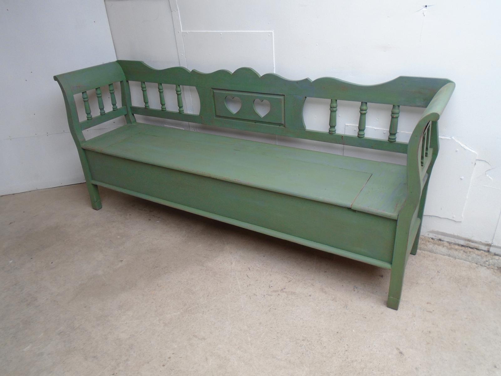 3/4 Seater Shabby Chic Pine Painted Green & Red Box Settle / Hall Bench