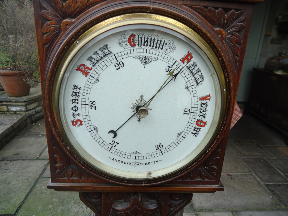 39ins Oak Hanging Barometer with Eagle