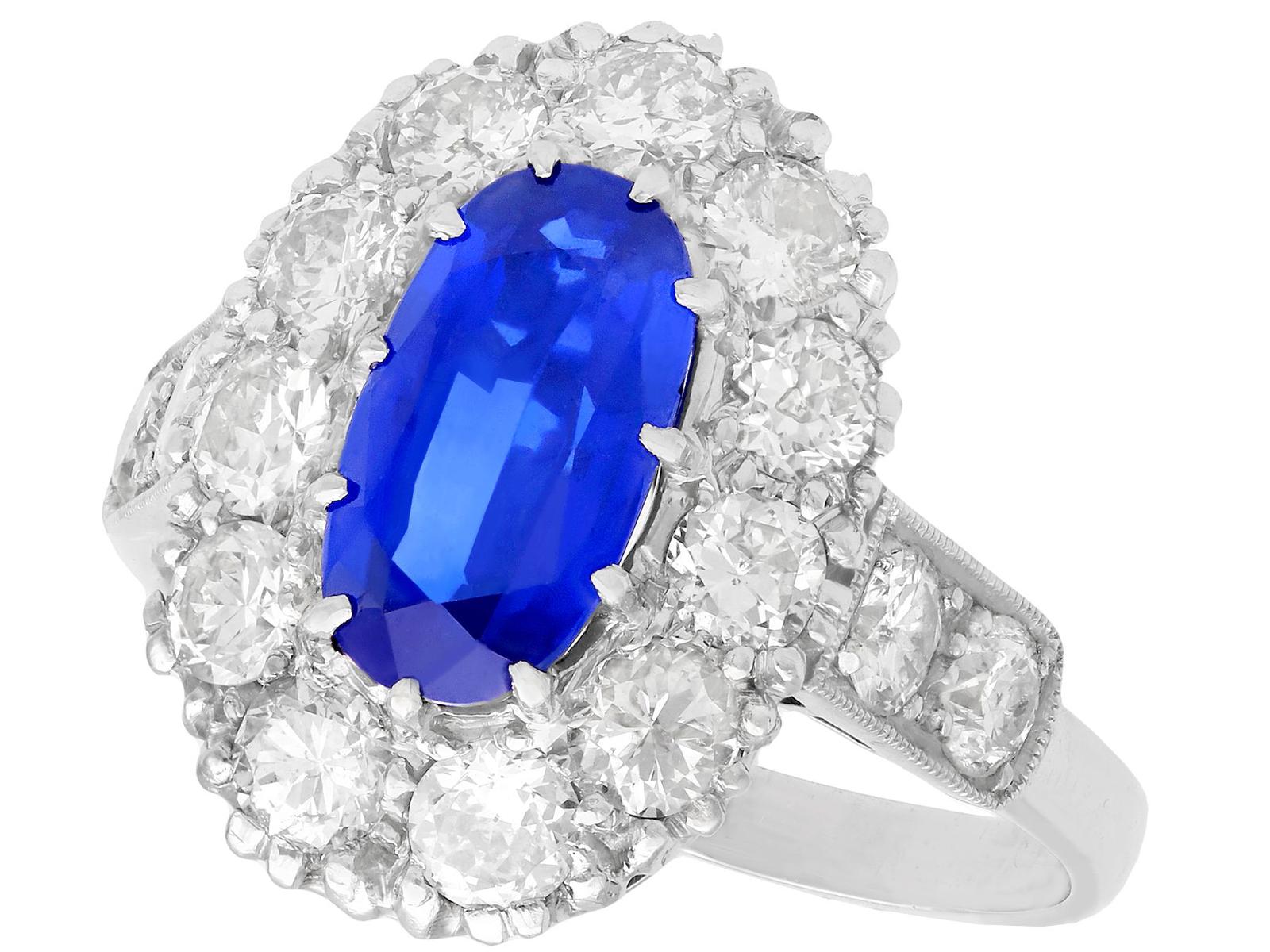 3ct Sapphire & 1.83ct Diamond, 18ct White Gold Cluster Ring c.1935