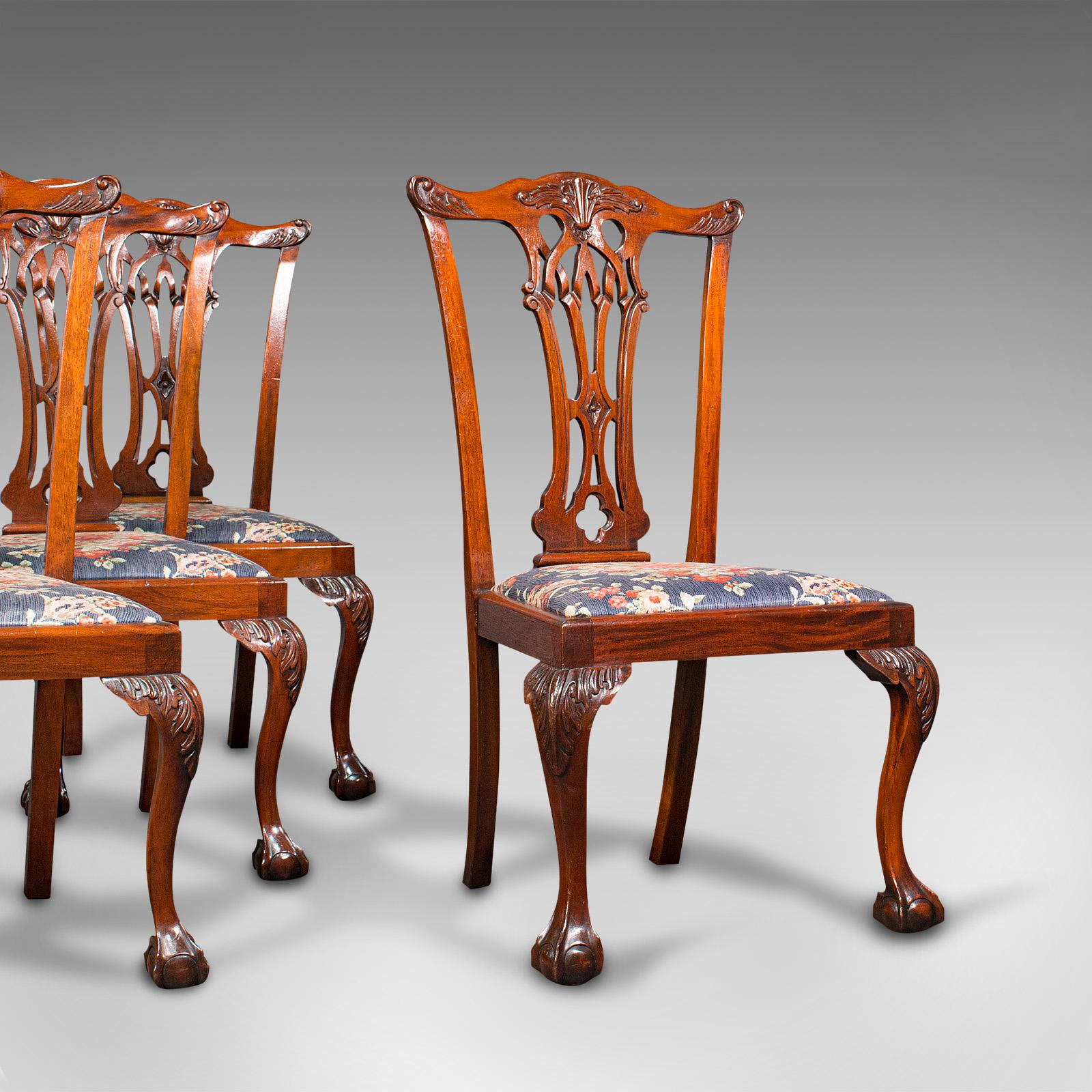 4 Antique Dining Chairs, English, Mahogany, Seat, After Chippendale, Victorian (1 of 12)