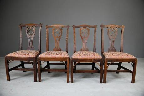 4 Antique Oak Chippendale Style Dining Chairs (1 of 12)