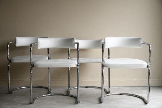 4 Chrome Cantilever Dining Chairs