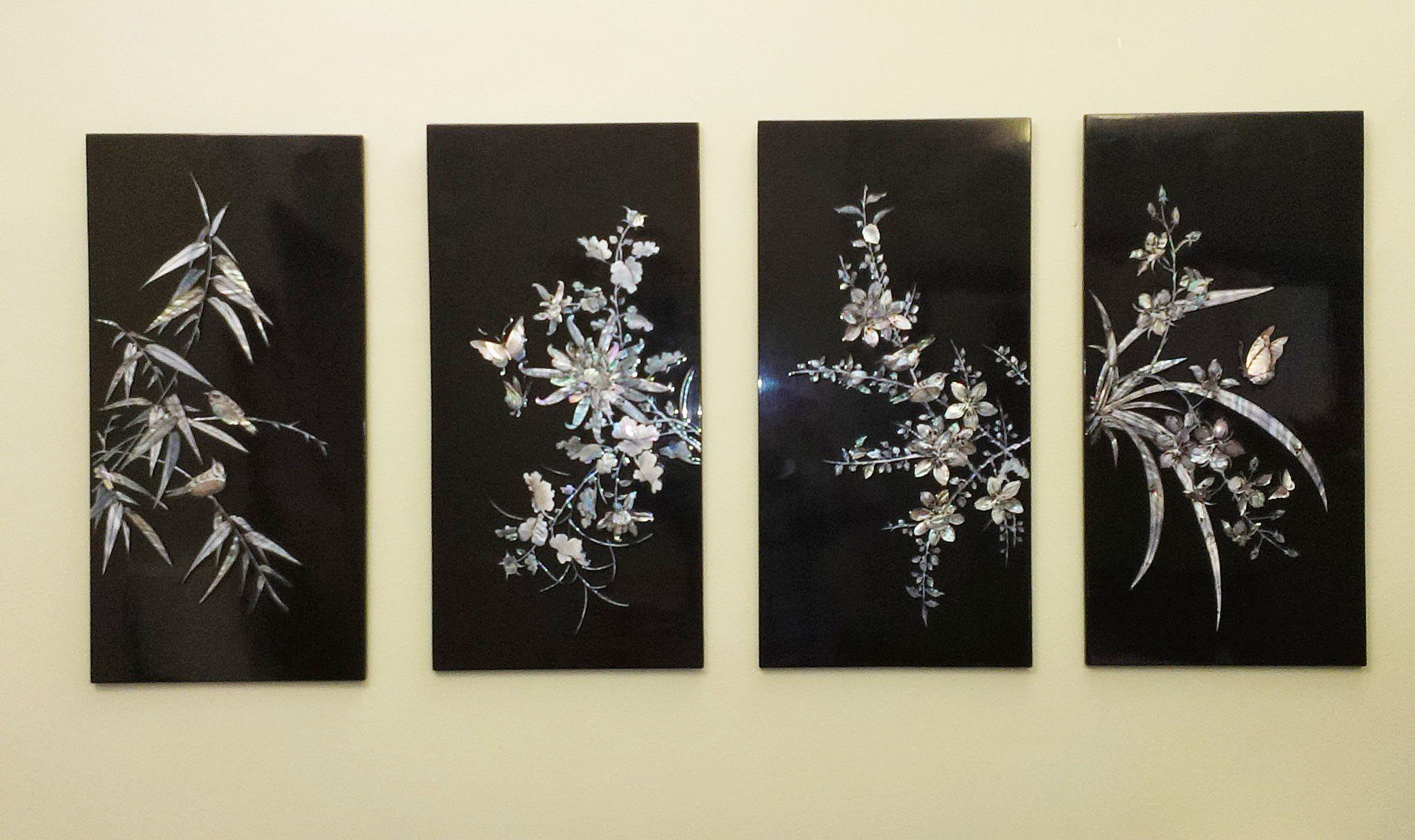 4 Mother of Pearl Inlaid Black Lacquer Panels (1 of 1)
