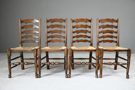 4 Oak & Rush Dining Chairs