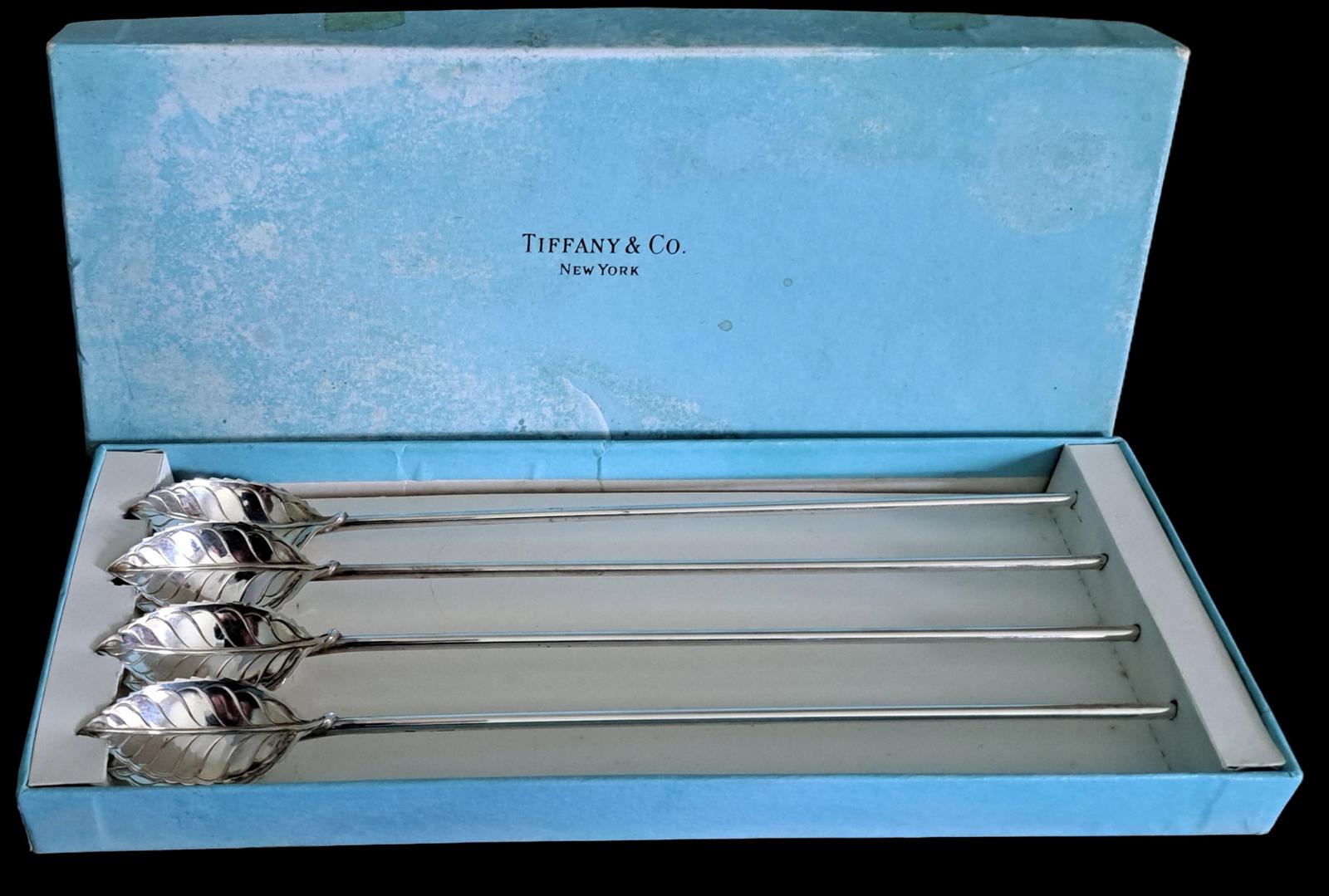 4 Tiffany & Co Silver Mint Julip Cocktail Stirrers Straws