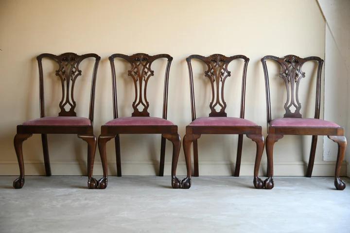 4 Waring & Gillow Mahogany Chippendale Style Dining Chairs