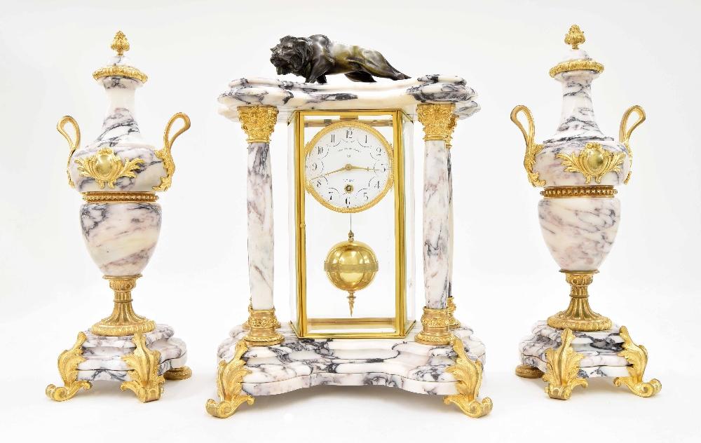 400 Day Mantel Clock & Garnitures by Trous D’Axes Comprimes