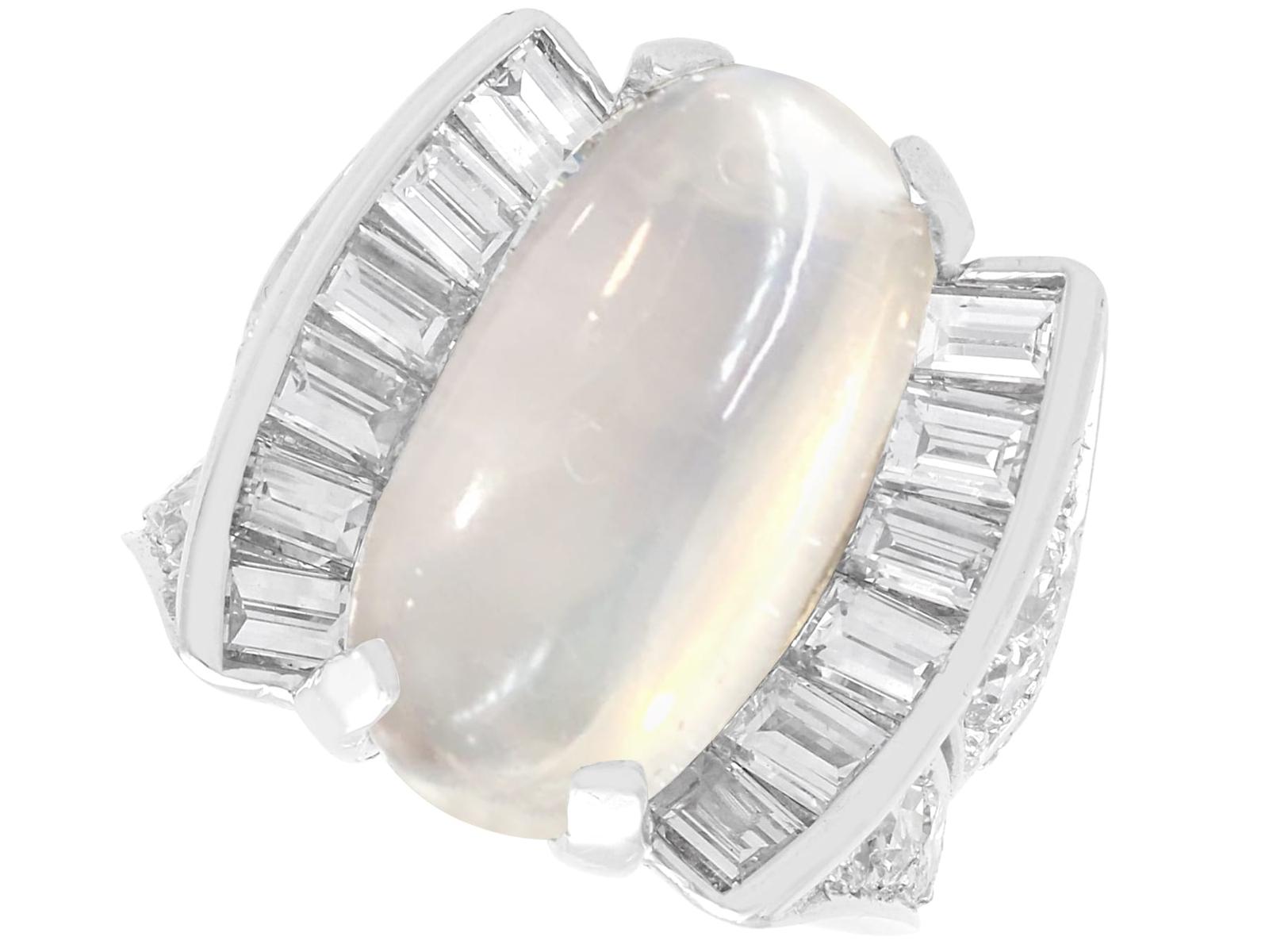 4.84ct Moonstone & 1.87ct Diamond Platinum Ring c.1935