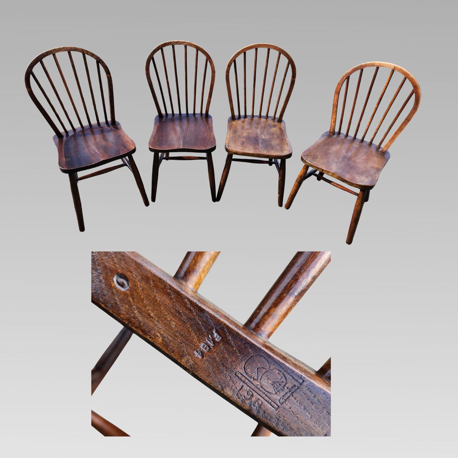 4x Genuine Ercol F184 1940s Craft Marked Elm & Beech Windsor Dining Chairs
