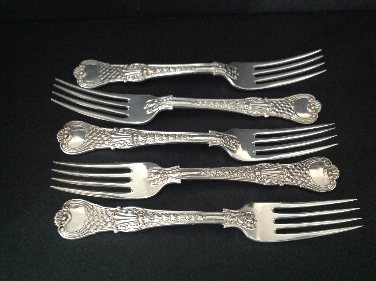 5 Antique Victorian Silver Coburg Dinner Forks 1861