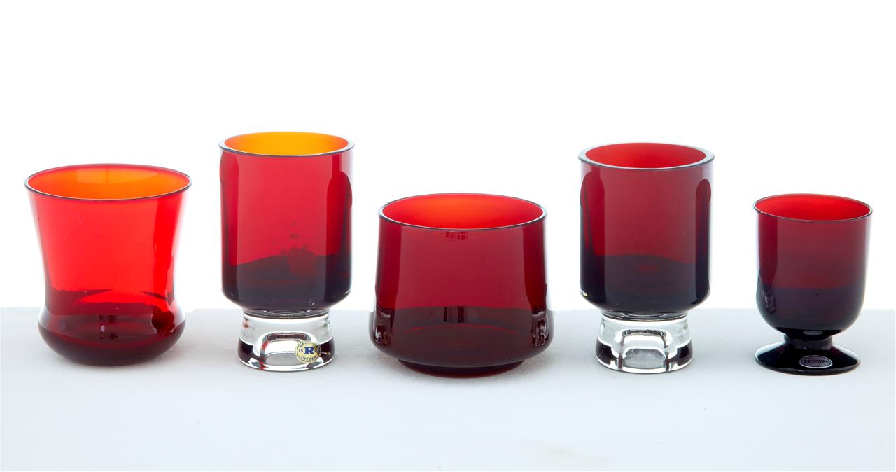 5 Pieces of 1950's Scandinavian Red Art Glass by Monica Bratt
