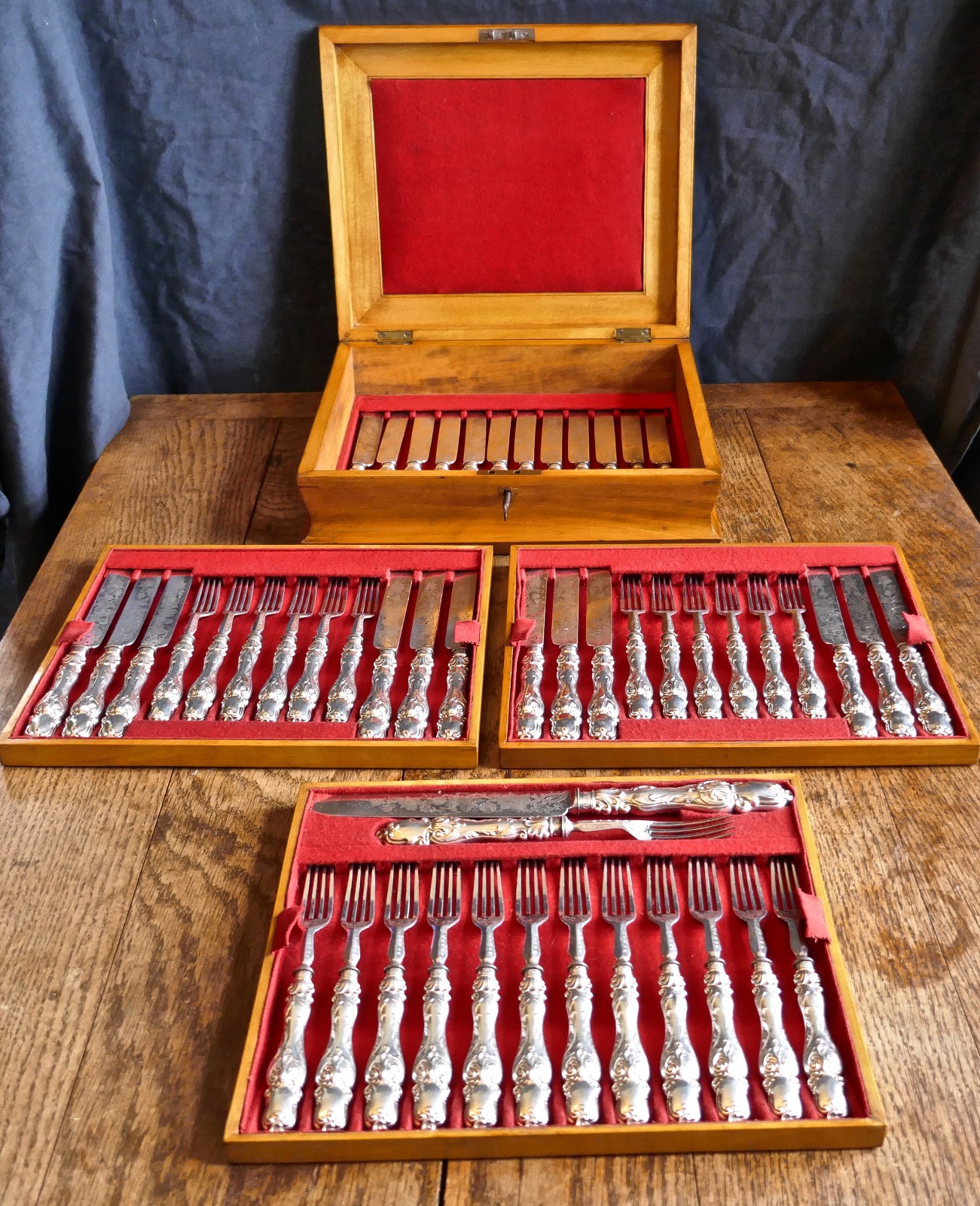 50 Silver Piece Desert Set in Original Sycamore Canteen 1860