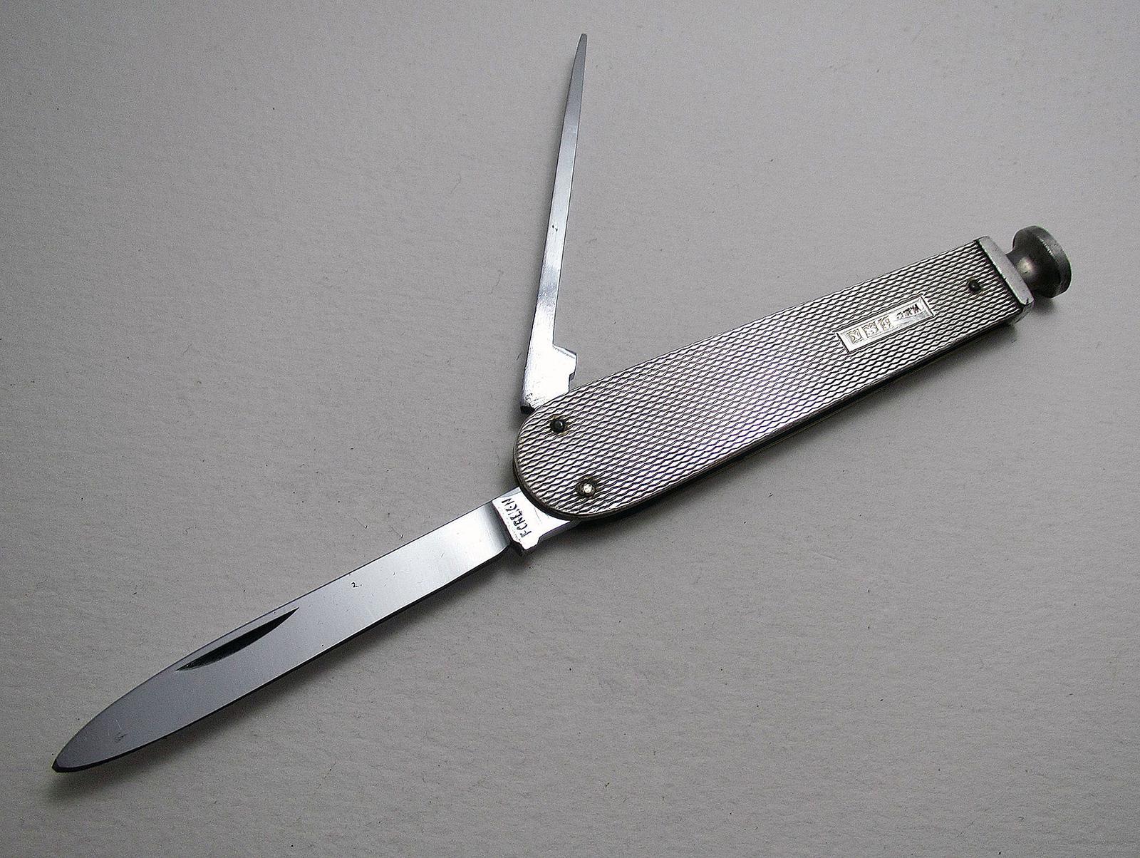 50s Vintage Birmingham Sterling Silver Stainless Steel, Pocket Multitool Fruit Knife Smoking Pipe Tamper Cleaning Tool Folding Penknife