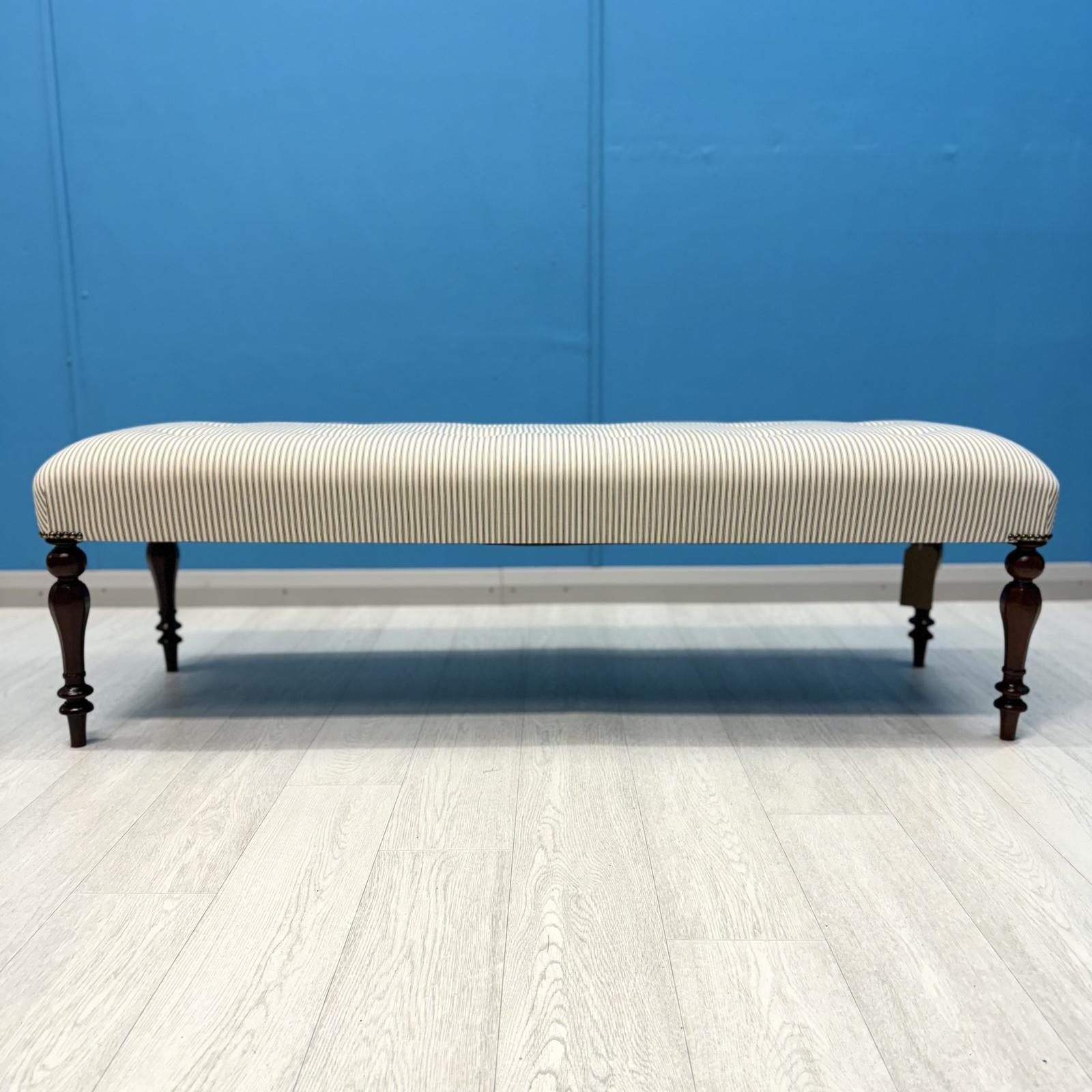 5ft Long Stool in Buttoned Ticking Stripes (1 of 5)