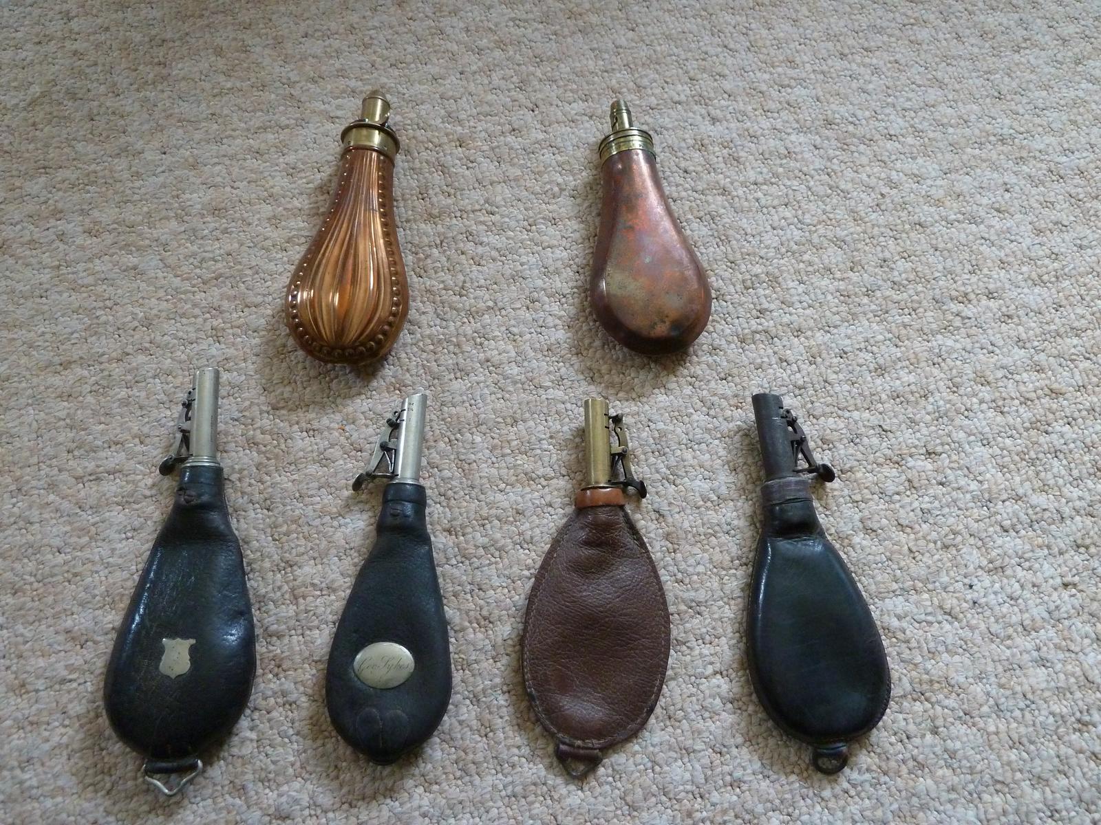 This 6 19th Century Shot / Powder Flasks is located in Lancashire, United Kingdom