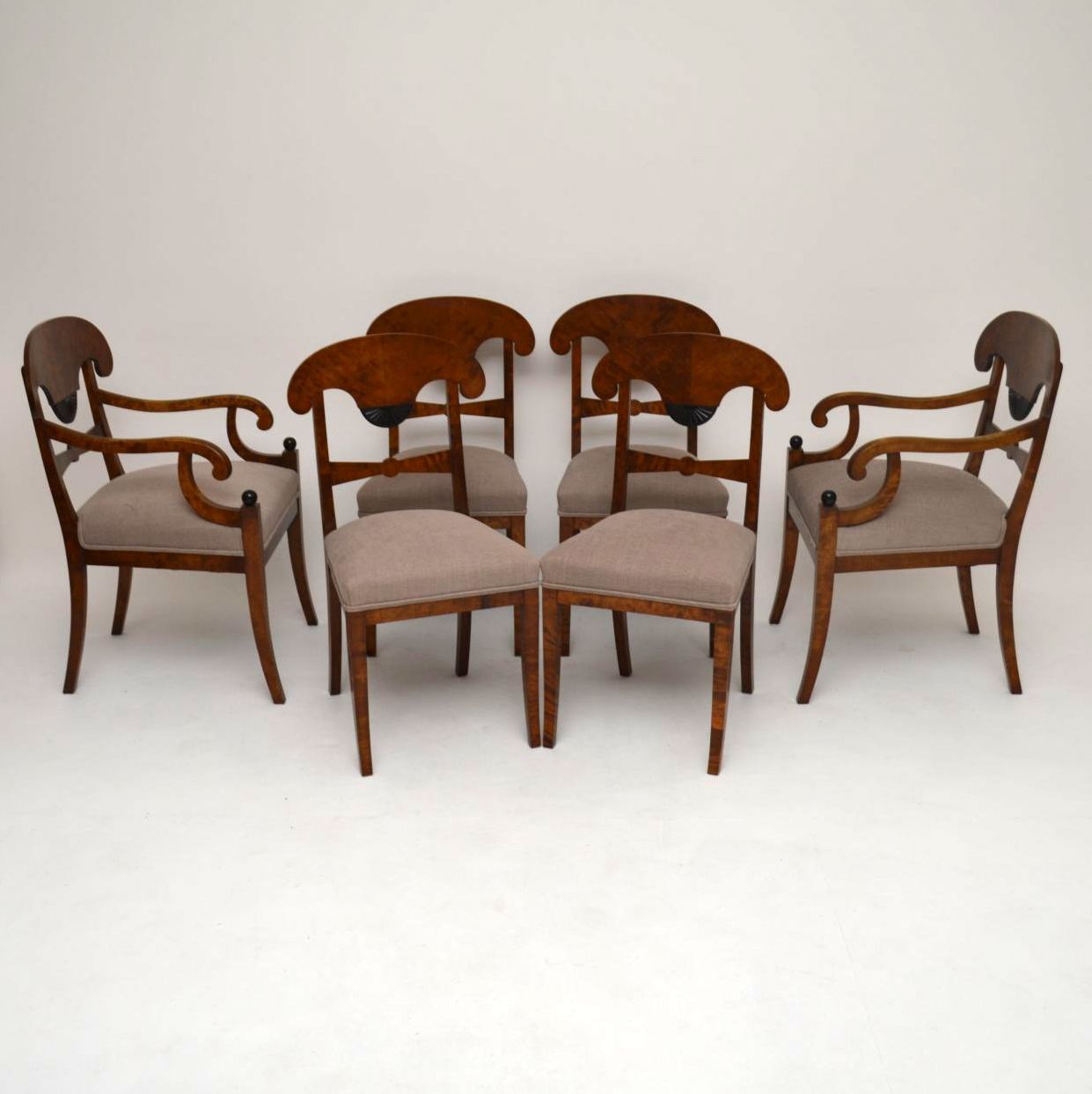 6 Antique Swedish Satin Birch Biedermeier Dining Chairs