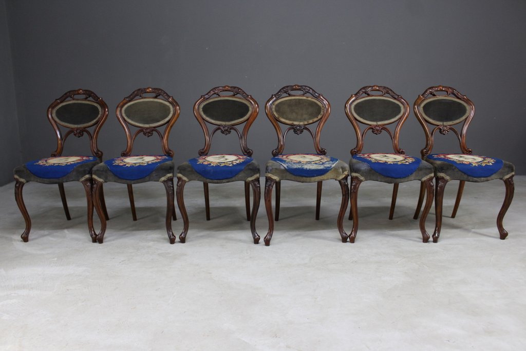 6 Antique Walnut Dining Chairs c.1850 (1 of 1)