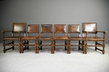 6 Cromwellian Style Brown Leather Dining Chairs